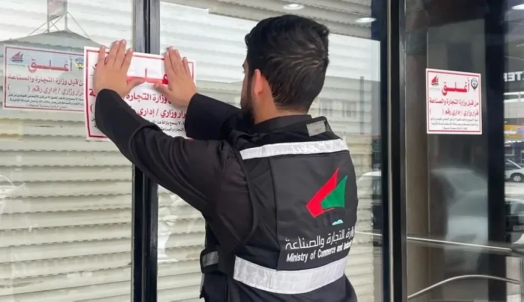 The Commercial Control Department of the Ministry of Commerce and Industry has sealed four businesses in the Shuwaikh Industrial Area for violating commercial regulations. These establishments were found to be illegally installing ready-made kitchens, doors, windows, and stairs.